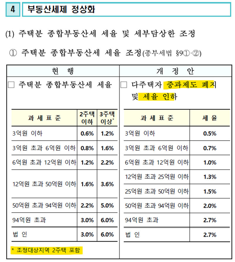 - 세율은 주택 소유 개수에 따라 다르며, 네 번째 이상의 주택부터는 11%의 세율이 적용됩니다.