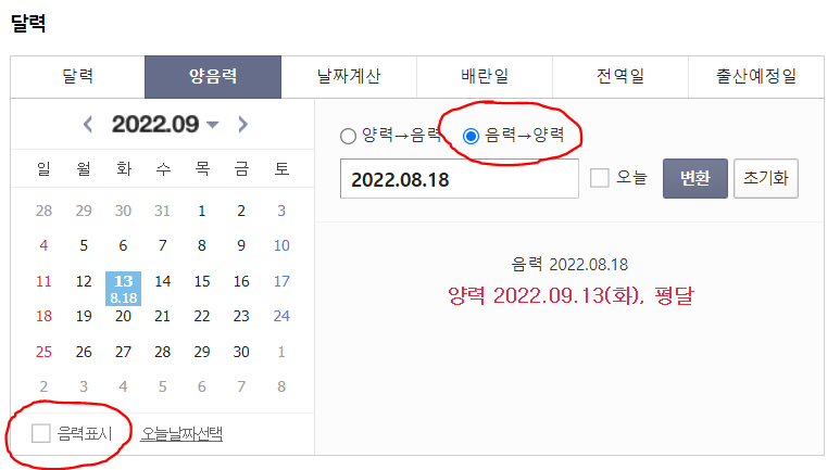 음력 양력 변환기를 사용하면 쉽게 해당 날짜를 파악할 수 있으니